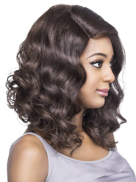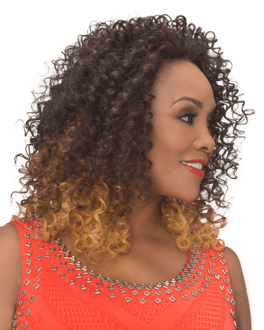 Vivica A Fox Pure Stretch Cap Synthetic Lace Front Wig - KARMEN LW Select OptionThe Karmen by Vivica Fox comes with a deep swiss lace front along with the new Futura fiber and an angled cut + loose body curl style.