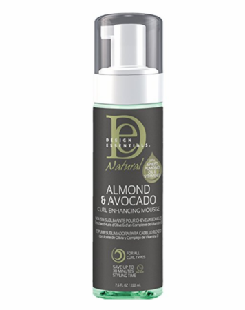 Introducing our NEW and Improved Design Essentials� Natural Almond & Avocado Curl Enhancing Mousse! This formula has been enhanced with Sweet Almond Oil and Avocado extracts for even more long lasting moisture and shine. Our Curl Enhancing Mousse is strategically infused with Olive Oil and Vitamin B Complex to define, polish, and seal every strand for long-lasting styles. Olive Oil provides curl quenching moisture and allows luminous shine to enhance every strand, while Vitamin B Complex increases your hairs strength and elasticity to promote healthy hair growth. This formula is essential for waves, curls, and coily textures seeking no frizz, no sticky reside, and no crunch during natural styling! •