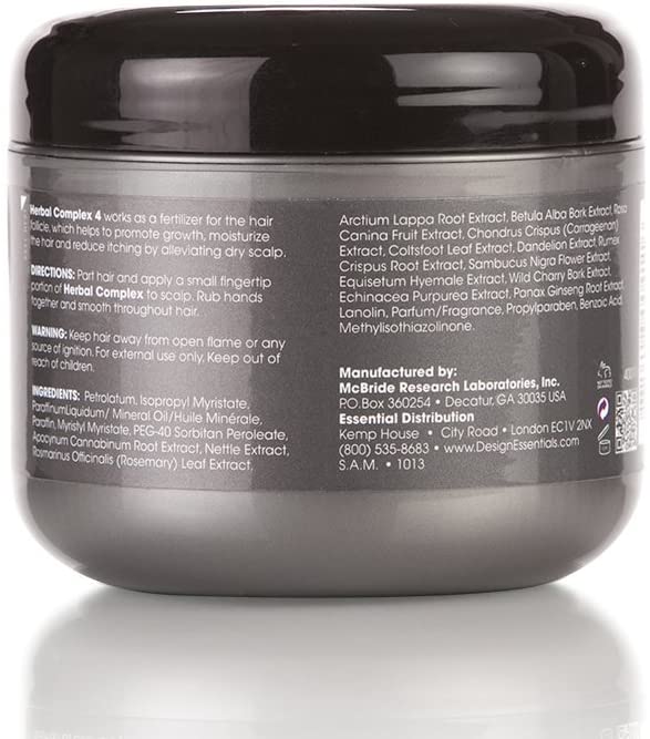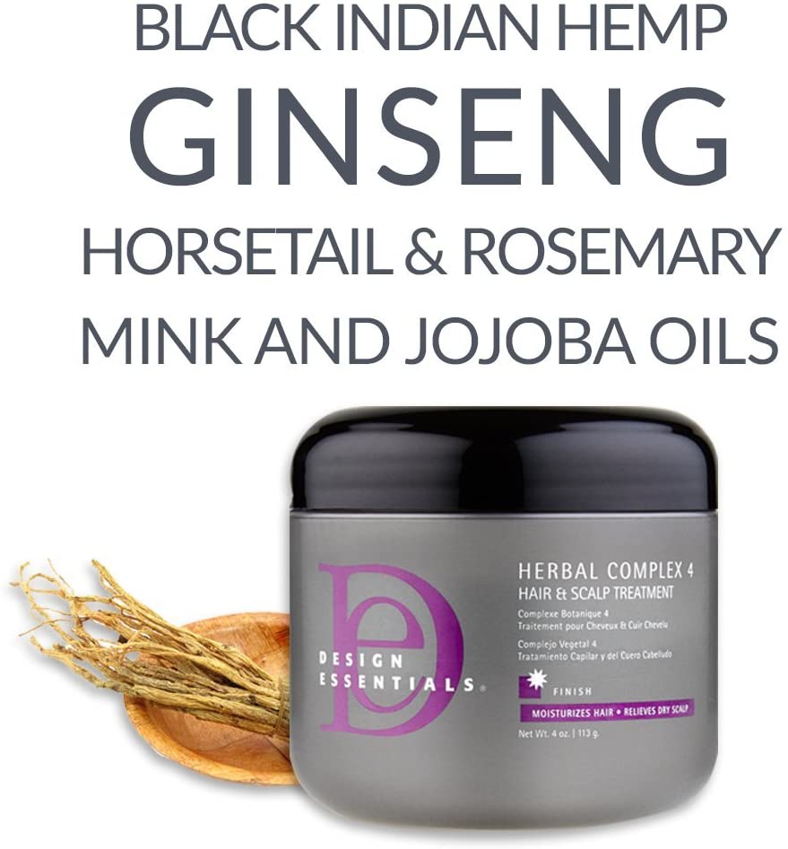 Give your scalp some love with our Design Essentials® Herbal Complex 4 Hair & Scalp Treatment. This is a lightweight compound of four essential herbs: Black Indian hemp, ginseng, horsetail, and rosemary.