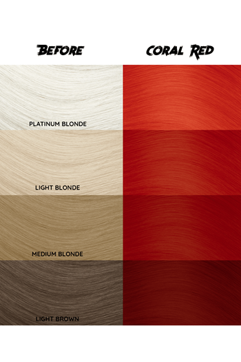 If you want the best, boldest results from our Coral hair dye, you will want to use our High-Lift Bleach Kit to lighten your hair to level 9 or 10 (blonde) before use. It is also suitable for level 8 (light brown) hair, but the results will be tonal.