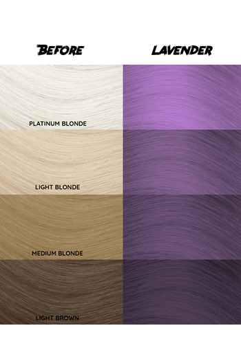 Lavender is a light purple hair dye and it is a pastel-lovers dream! This cool-toned shade made from a blue base works well straight from the bottle as a single color, or a primary mixer to make your own shade. For optimal results, we recommend lightening your hair to level 9 or 10 (blonde) before use.