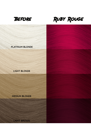 This semi-permanent deep red hair dye is named after a ruby gemstone due to its smoldering, rich dark color. Ruby Rouge is a dramatic shade that is well suited for an all-red look, or also as a highlighter if you're just looking for a pop of color! To achieve the best results, we recommend lightening your hair to level 9 or 10 (blonde) before use. It is also suitable for level 8 (light brown) hair, however, results will only be tonal. Go deep red for a vampy look!