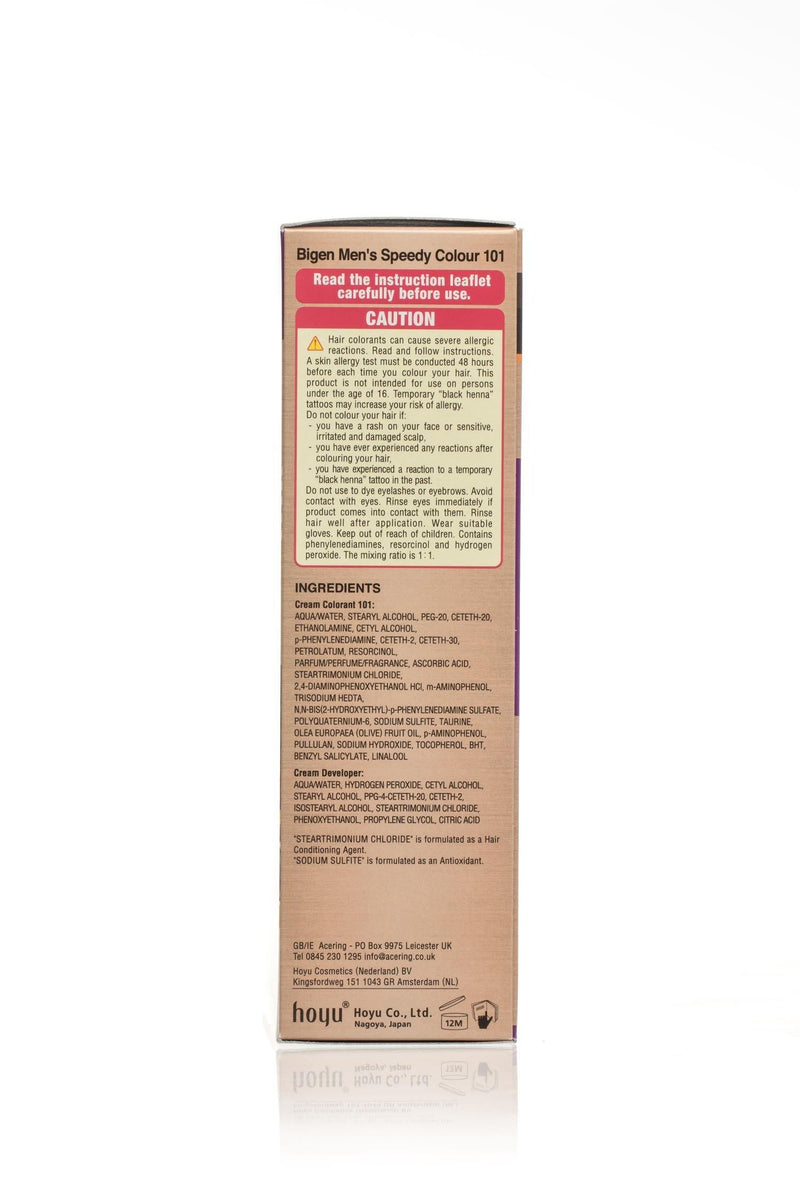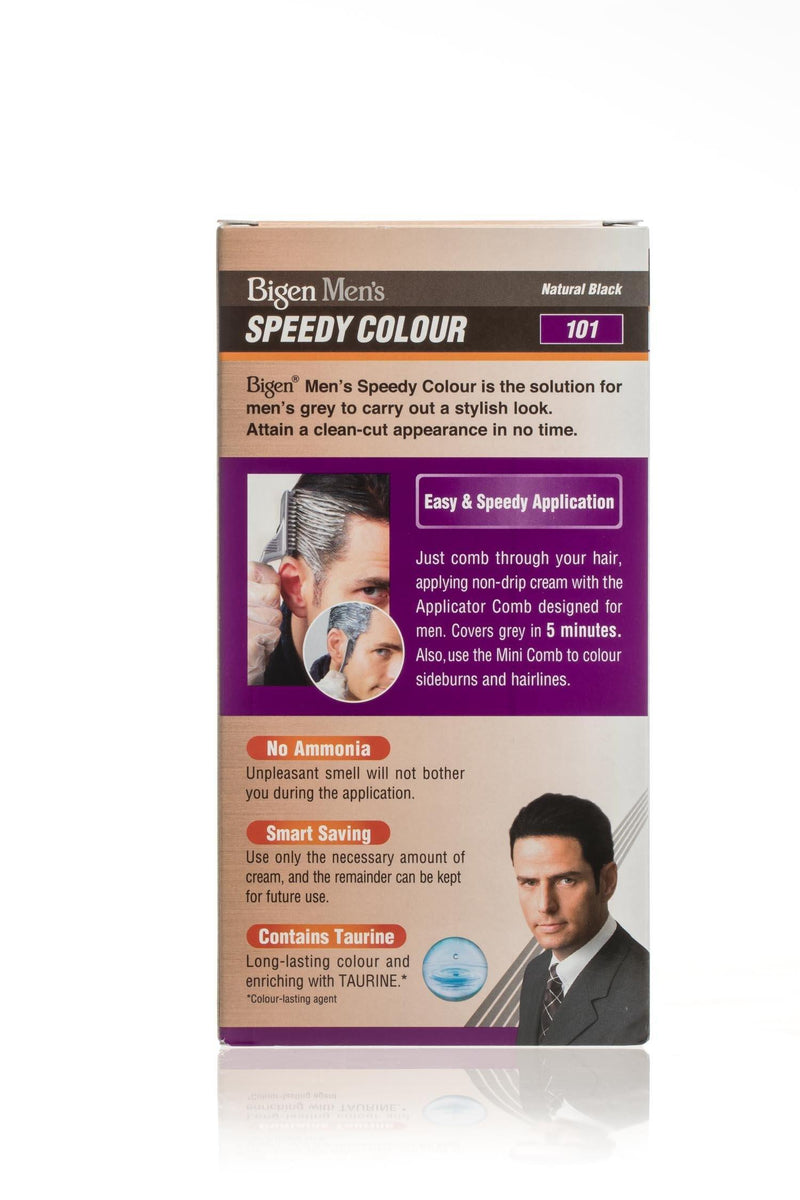 Bigen Men's Speedy Colour Dark Brown 101 is a unique formula with conditioning agents (Olive oil, Glycerin and Pullulan) which gives natural shade, luster and moisture by penetrating deeply into each hair. Natural healthy looking results. No Ammonia.