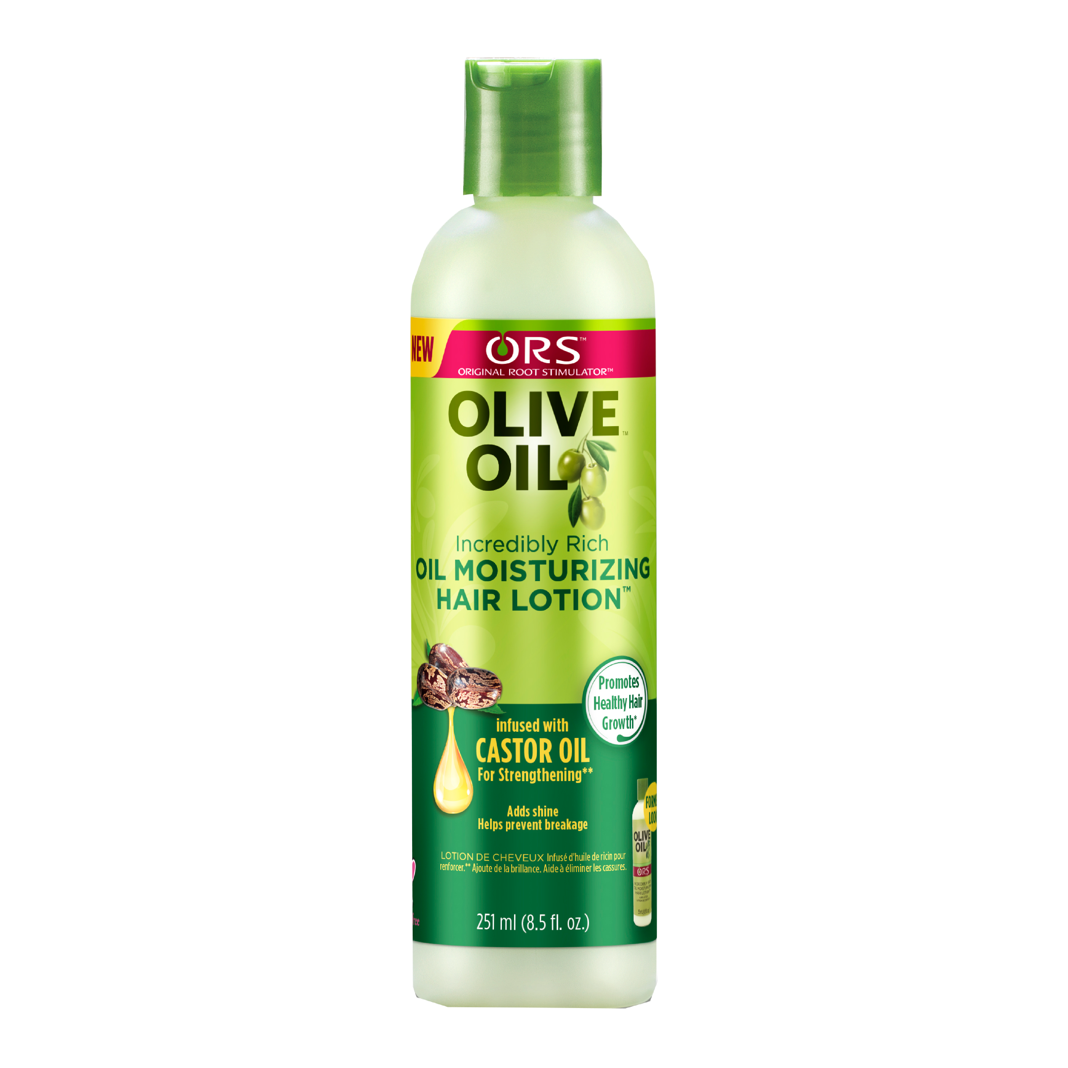 The ORS Olive Oil Incredibly Rich Moisturizing Lotion Formulated with Black Castor Oil, this daily hair lotion restores hair natural moisture balance, imparts long-lasting. Add Shine and provides maximum heat protection. With consistent use, hair will begin to show improved elasticity, hydration and add shine. Suitable for all hair types.
