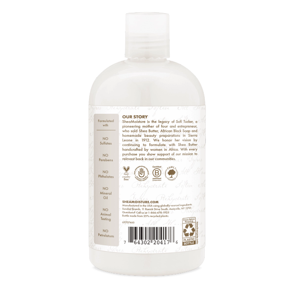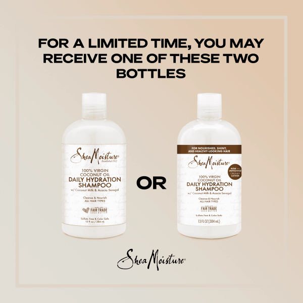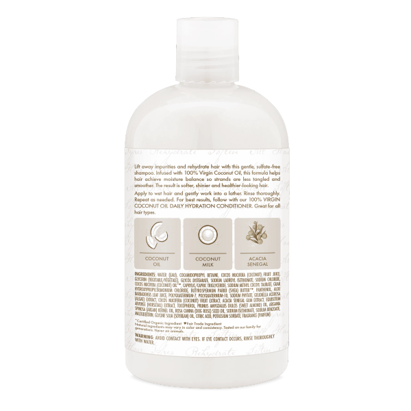 Description: Shea Moisture 100% Virgin Coconut Hydration Shampoo lift away impurities and re-hydrate hair with this gentle sulphate - free shampoo. Formulated with a nourishing blend of 100% Virgin Coconut and Shea Oils, our shampoo is the one you can count on for that wonderful clean and moisturized feeling. Coconut oil shampoo is great for hair growth because it contains ingredients that keeps hair hydrated, while helping to tame the frizz. Rich certified organic Shea Butter blends nicely with coconut oil, and we've also infused this shampoo with other natural moisturizers such as Argan Oil and Sweet Almond Oil. Coconut Milk and Acacia Senegal are also included to help provide renewed hydration, manageability and shine. |