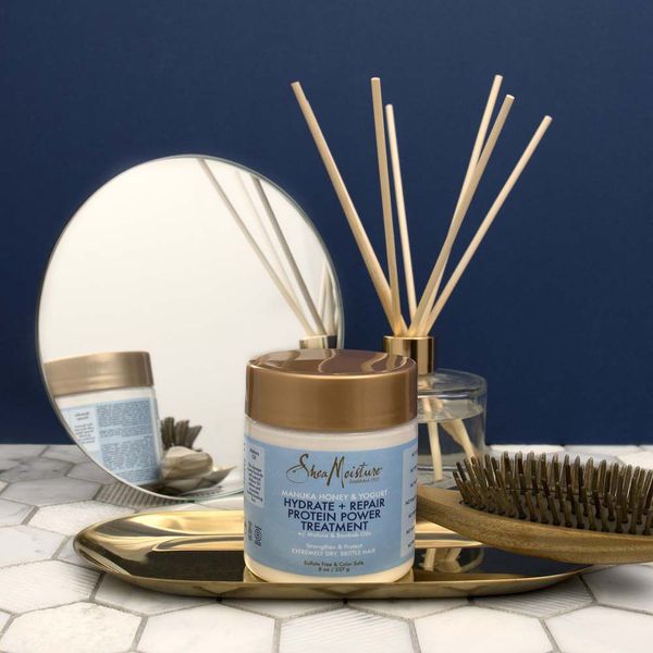 Description: SheaMoisture's Manuka Honey & Yogurt Hydrate + Repair Protein-Strong Treatment with Mafura & Baobab Oils is powered by reparative proteins and butters. This nutrient-rich blend of shea butter is boosted by addition of antioxidant Manuka Honey and protein-infused Yogurt Powder and Yogurt Extract. Additionally, we've included deep conditioning oils such as Baobab Oil and Mafura Oil to create a fuss-free strengthening cream to naturally reinforce and revitalize over-processed, abused hair fibers. Restore, repair and maintain gentle to medium waves or curls with regular use of our proprietary hair-nourishing blend. It also works well on wig hair, and we recommend using it for deep conditioning a wig overnight for an easy-to-wear hairstyle. |