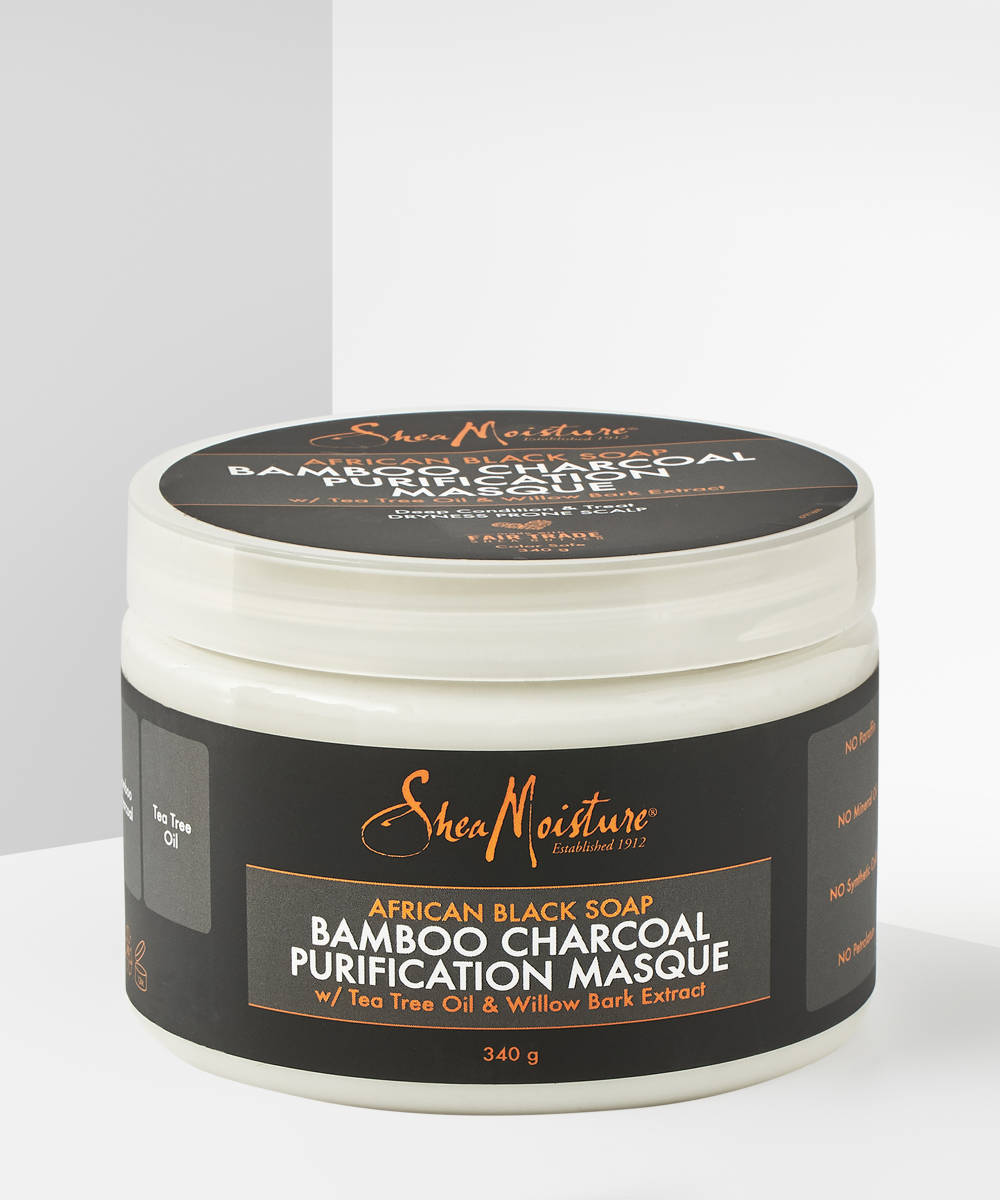 Description: African Black Soap Bamboo Charcoal Masque from Shea Moisture, Cleanse and detox your locks. This intense treatment sinks into the hair and scalp to boost hydration levels and nourish each and every strand. Enriched with African black soap, bamboo charcoal, tea tree oil, and willow bark extract, this mask works to absorb all excess oil and removes build up as it treats the hair. |