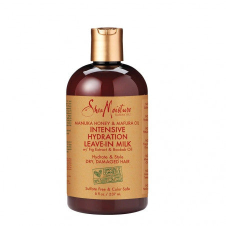 Description: Shea Moisture Manuka Honey & Mafura Oil Intensive Hydration Leave-In Milk, Deeply moisturize hair that is thirsting for more moisture. This healing blend of Manuka Honey and Mafura Oil effortlessly detangles your hair after a shampoo or during a co-wash, instantly providing enough slippage to greatly improves manageability for easier natural styling. Ideal for infusing more hair hydration into follicles that are dry, lifeless or straw-like in look and feel.This intensive hydration leave-in milk contains certified organic Shea Butter, Honey, Mafura and Baobab Oils blended into a wonderful nutrient-rich formulation that conditions ultra-dehydrated strands, helping your hair regain softness, body and shine. Instantly reveals beautiful, healthy looking hair, especially when used with our Manuka Honey & Mafura Oil Shampoo. |