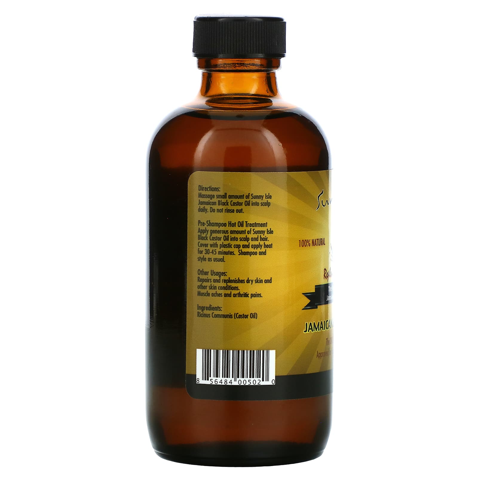 Pre-Shampoo Hot Oil Treatment. Apply generous amount of Sunny Isle Black Castor Oil into scalp and hair. Cover with plastic cap and apply heat for 30-45 minutes. Shampoo and style as usual.