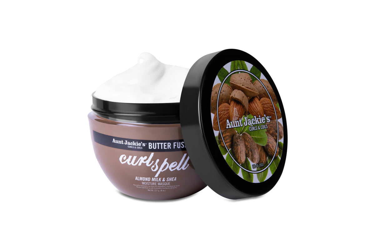 Watch curls, waves and coils magically fall under Aunt Jackie’s moisture spell. The enchanting trio of almond milk, shea butter and almond oil leaves hair hydrated, with greater manageability, softness and smoothness. Infused with rice protein to encourage healthy growth and strengthening, Curl Spell helps to seal in long-lasting moisture. This buttery conditioning masque is free of drying alcohols that rob hair of moisture, and mineral oil & petrolatum that can clog pores and weigh hair down. Excellent moisture and conditioning therapy for all hair types and textures.