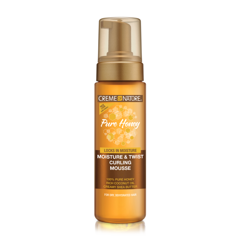 Description: Define your curls and moisturize dry, brittle hair with our Moisture & Twist Curling Mousse infused with Pure Honey, Certified Natural Coconut Oil and Shea Butter. This formula provides medium hold while delivering defined, frizz-free spirals that last. |