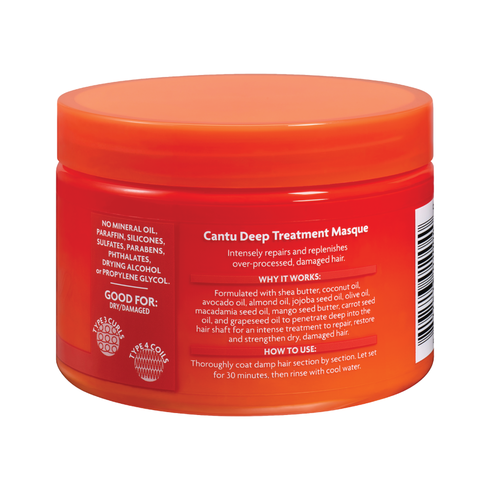 Description: Cantu Deep Treatment Hair Masque Provides Shea-Butter infused moisturisation to hair for an intense treatment to help strengthen dry, damaged hair. Made with pure Shea Butter, Cantu restores your real, authentic beauty. Embrace your curly, coily or wavy hair with Cantu. |
