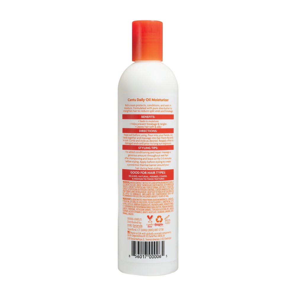Description: Made with pure Shea Butter to replace vital moisture revealing stronger, healthier hair with a natural shine. Cantu Daily Oil Moisturizer helps reduce split ends, conditions each strand without weighing hair down. Revitalises dry, brittle hair with deep-penetrating Shea Butter & essential oils, Nourishes & detangles to reduce split ends & breakage ,Helps protect against damage caused by harsh weather Great for: relaxed, texturised, coloured & permed hair. |