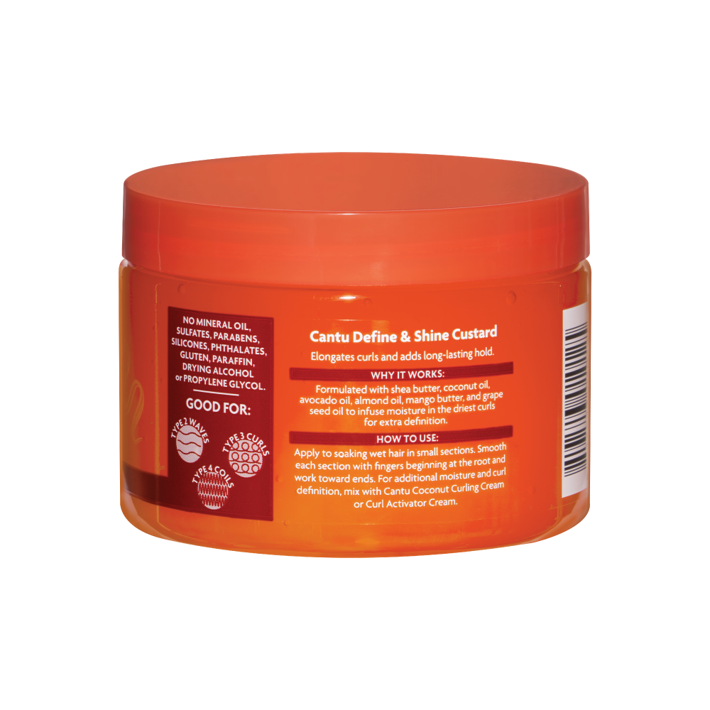 Description: Cantu Define & Shine Custard contains ultra moisturising ingredients make the driest curls defined and healthy. Define & Shine Custard helps reduce hair bulk, elongates curls and provides enough hold for long lasting natural styles. Made with pure Shea Butter, Cantu restores your real, authentic beauty. Embrace your curly, coily or wavy hair with Cantu. |
