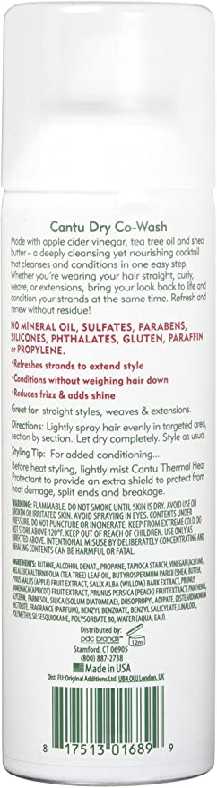 Cantu Dry Co-wash Is Made With Apple Cider Vinegar, Tea Tree Oil And Shea Buttera Deeply Cleansing Yet Nourishing Cocktail That Cleanses And Conditions In One Easy Step. Whether You Are Wearing Your Hair Straight, Curly, Weave, Or Extensions, Bring Your Look Back To Life And Condition Your Strands At The Same Time. No Mineral Oil, Sulfates, Parabens, Silicones, Phthalates, Gluten, Paraffin Or Propylene.