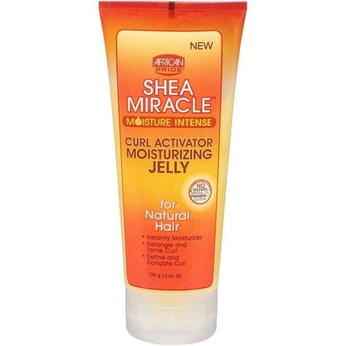African Pride Shea Miracle Curl Activator Moisturizing Jelly helps eliminate dryness, enhances body bounce and shine. Regular use of Moisturizing Jelly helps define curls & coils, tame frizz and elongate curls.