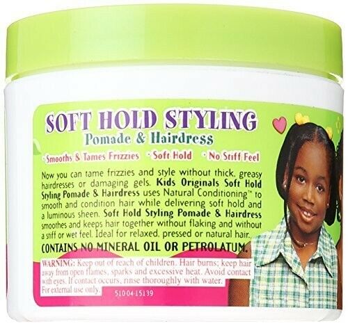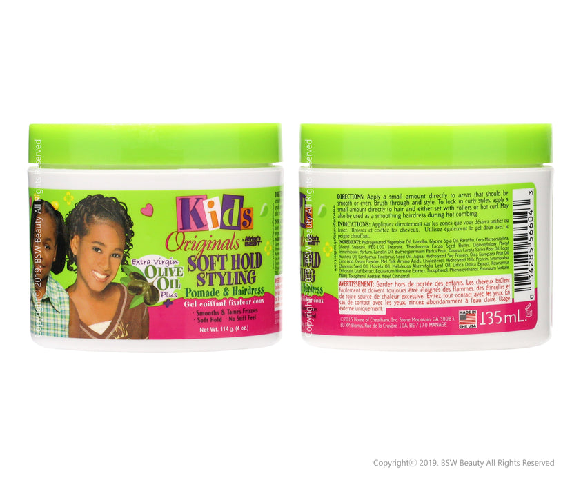 Africa's Best Kids Organics Soft Hold Styling Pomade & Hair dress uses organic conditioning to smooth and condition hair while delivering soft hold and a luminous sheen.