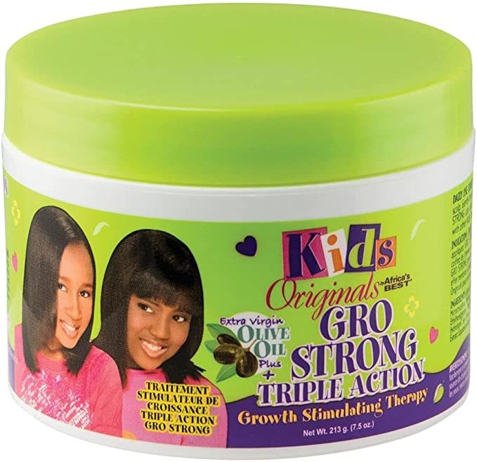 Healthy growth for hair is achievable now more than ever! Africas Best Kids Gro Strong Tripe Action Stimulating Therapy is fortified with NutriGro an exclusive triple action organic complex enriched with extra virgin olive oil.
