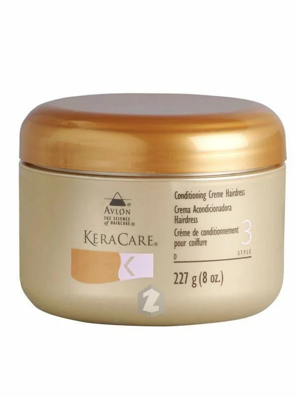Description: Kera Care Conditioning Creme Hairdress, moisturizes and revitalizes dull, dry hair adding a natural-looking sheen. A hairdressing for styling manageability with an ultra light conditioning formula. Concentrated with high-quality natural oils. Quick-penetrating formula. Can be used as a pomade or wax to separate and define hair. Not heavy or greasy, so hair retains freedom of movement.  |