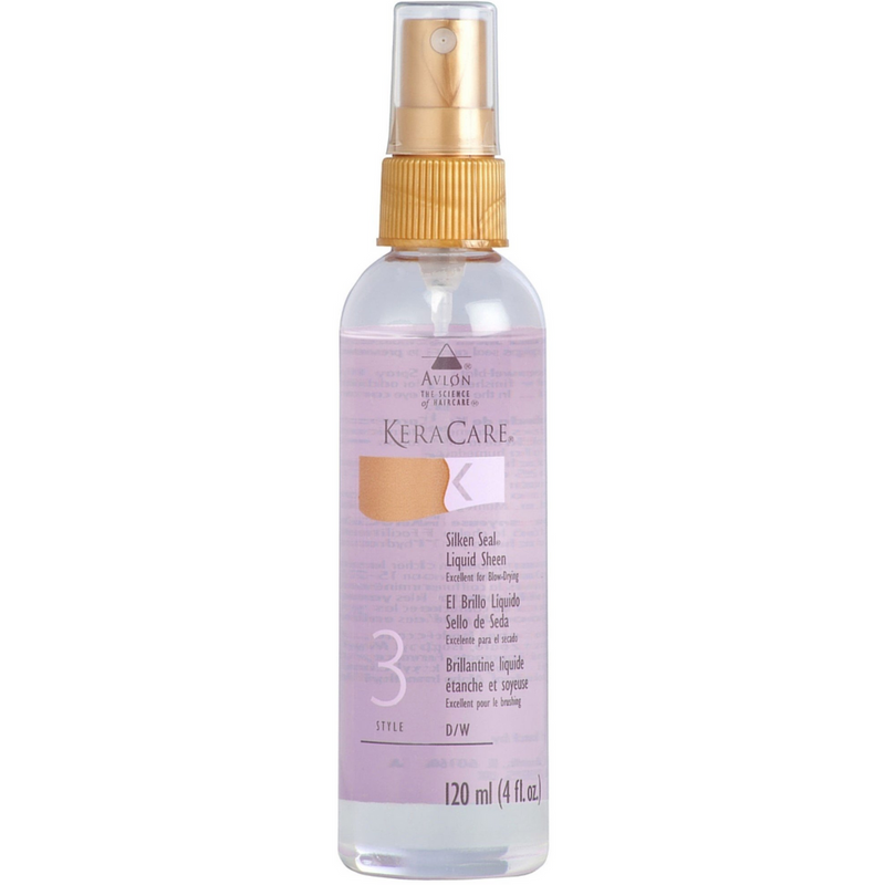 Description: Kera Care Silken Seal Liquid Sheen is a clear liquid silicone laminate spray that produces a high sheen and remarkable softness. When used prior to blow drying, it helps protect hair from thermal styling damage and moisture loss as it seals the cuticle layer of the hair. Non-oily. Contains sunscreen ingredients to help protect hair from damaging UV sun rays. Finished styles will be silky, full of body and lustrous. When used as a sheen spray, hair is instantly transformed from dull to radiant. Seals cuticle surfaces creating super-shiny, silky hair that still retains body. Great for both wet and dry hair. |