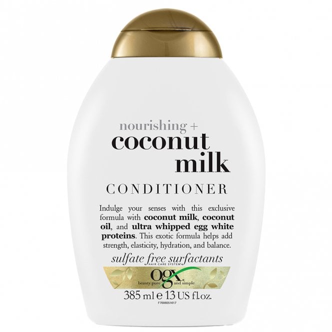 OGX Nourishing Plus Coconut Milk Conditioner for Dry Hair (385ml) helps to add strength, elasticity, and hydration into tired, dry hair. This tropical blend helps bring out the hair's natural strength and moisturises for total nourishment.