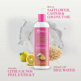Infused with key ingredients such as safflower oil, rice water for hair, yuzu, castor oil and coconut oil to strengthen and lock in moisture. This daily moisturizer is the perfect solution for bringing life back to dry thirsty hair. |