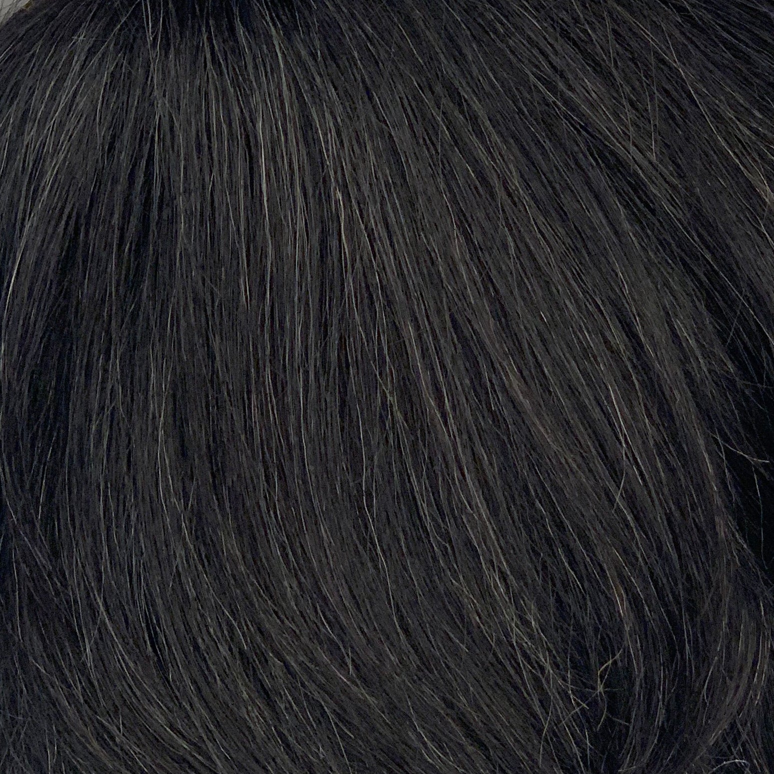 Short, high top wig with pin curls & fringe. This wig is razor cut to taper at the nape & features wet look style.