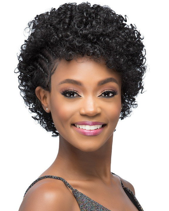 Beatrice by Vivica Fox is short tight rod set with invisible side cornrow braids. A young looking style.