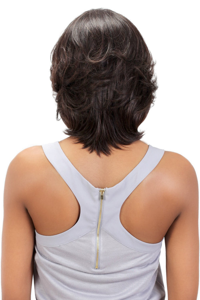 13" 100% REMI STRAIGHT BOB WITH OFF FACE LAYERED ENDS 13" Full Lace Remi Hair Wig with Natural Loose Curl on the Side and in the Back Full Lace Front Wig Available Color: 1, NATURAL