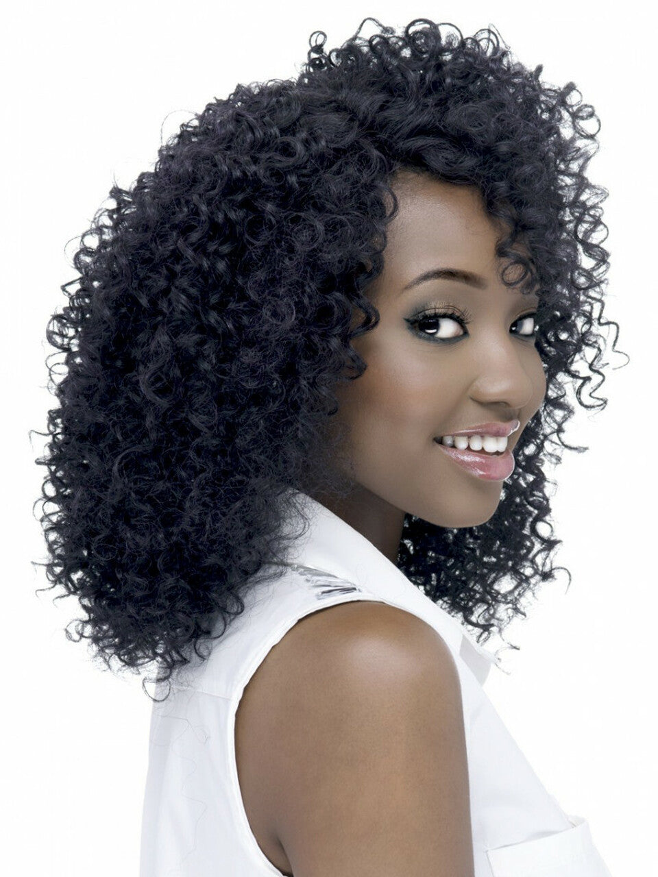 The Jupiter by Vivica Fox features natural tight spiral curls with an invisible side part. Naturally embedded “baby-hair” is used to enhance the overall believe-ability and blends well with your own hair. Its high heat-resistant fiber not only curls well, but keeps the curls longer and looking fresh. You may forget you’re wearing a wig with this lace front!