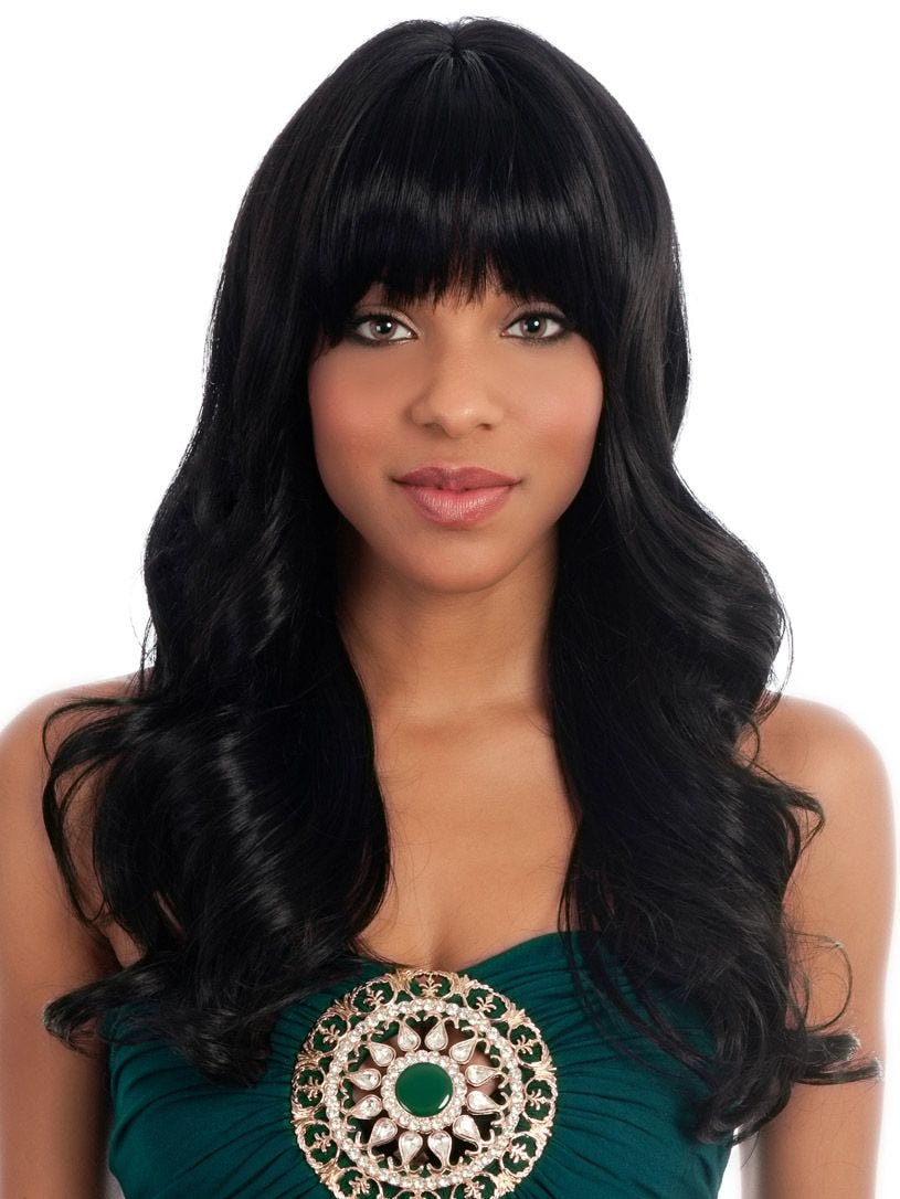 The Kimberly Synthetic Wig by Vivica Fox is a layered body curl with bang. This wig is heat friendly, so you can style as you please!