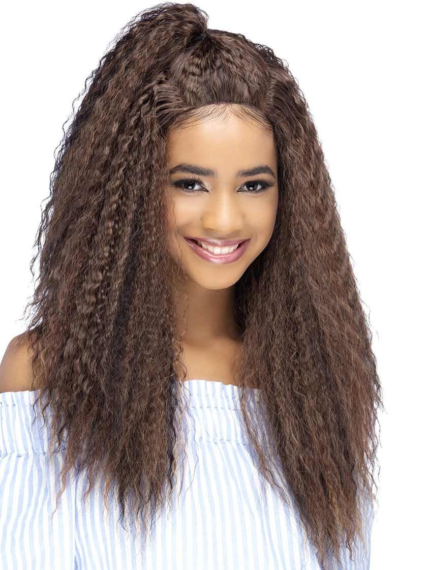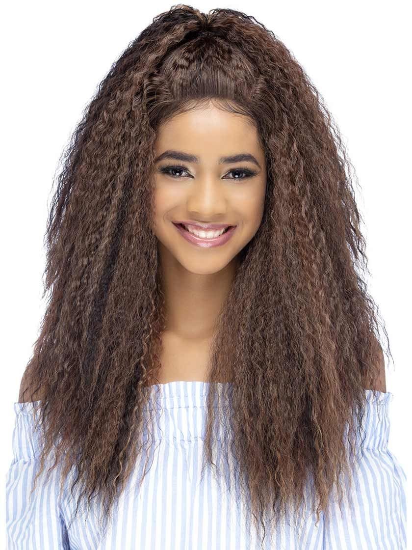 Manuka by Vivica Fox is an 24 inch layered water wave with top tied hair & invisible U part. Trendy half up, half down style.