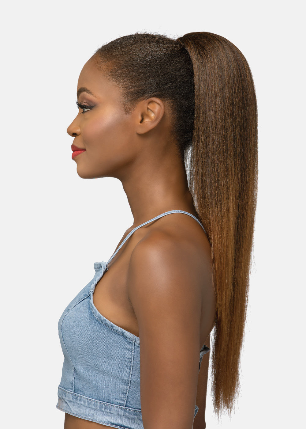 24″ LAYERED PONYTAIL WITH YAKI TEXTURE