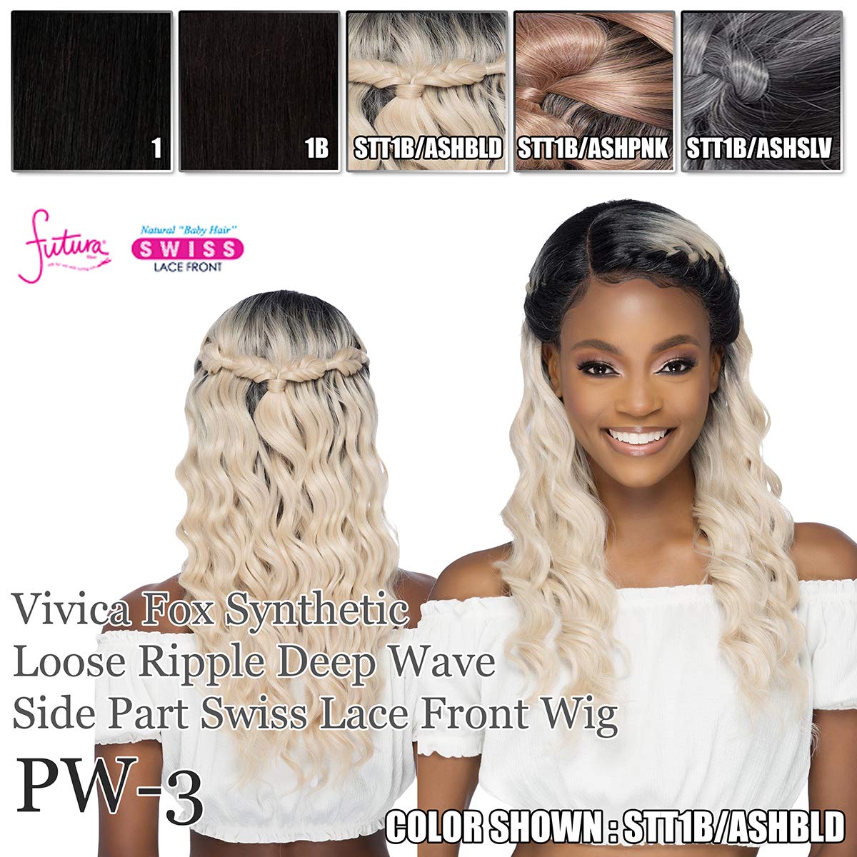 Color Shown: STT1B/ASHBLD. Synthetic material. Length: Long 23" Loose Wavy Deep Wave with Invisible Side Part French...