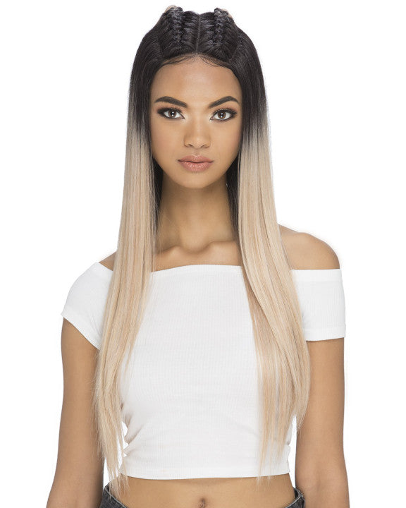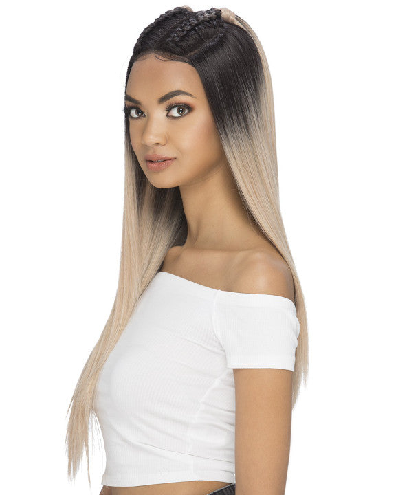 Raina by Vivica Fox is an 29" layered straight style with 2 braids on top & an invisible omega part. Trendy braid style.
